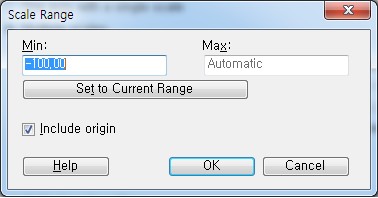 축에 대한 최소, 최대값을 지정할 수 있습니다. 최소값을 -100으로 지정한 후 OK를 눌러 값을 적용해주면