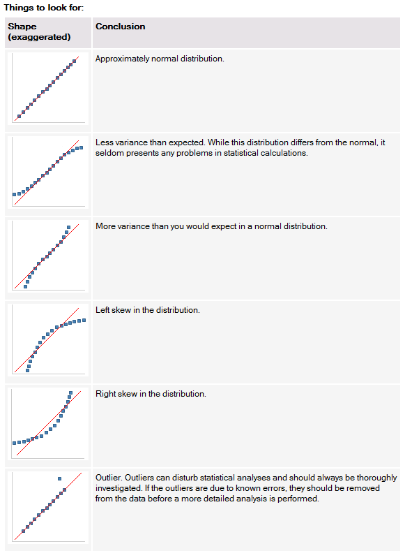 위의 Spotfire 도움말에서 제공하는 이미지를 참조하면 해당 데이터는 정규분포를 따르지 않고 Right skewed 된 분포를 가지며 Outlier가 존재하는 것을 알 수 있습니다. 이 경우 Outlier를 제거하고 정규분포를 따르도록 데이터 변환이 필요한 상황입니다. 다만 이와 같은 형태의 데이터 변환은 통계 지식이 요구되며 고급 Spotfire 기능이 필요하므로 깊게 설명하는 것을 넘어가도록 하겠습니다.