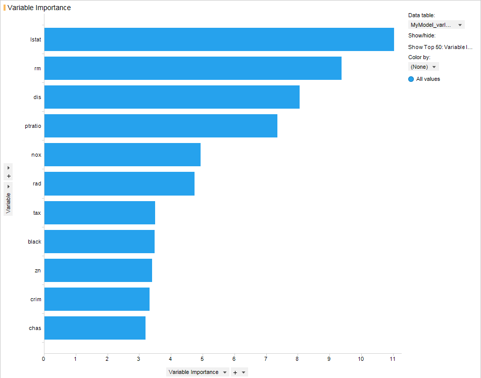 - Variable Importance : 투입되는 다수의 독립변수 중 어떤 변수가 중요한 지, 이에 대한 중요도를 나타내는 시각화입니다.