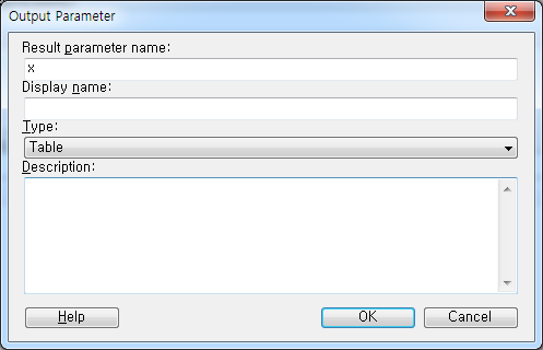 n은 숫자형의 단일 값의 input Parameter로 설정되며 입력된 값은 스크립트 실행 시 같이 선언되어 실행됩니다. 다음으로 Output Parameters로 넘어가서 Add를 클릭한 후 다음과 같이 설정합니다.