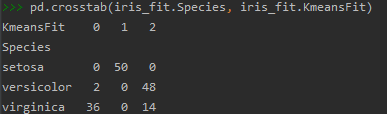 pd.crosstab(iris_fit.Species, iris_fit.KmeansFit)