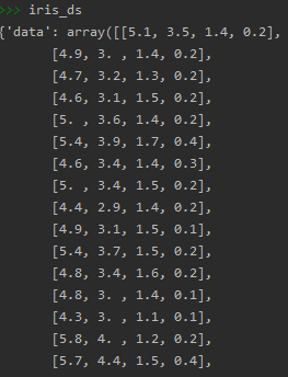 sklearn에는 다양한 샘플 데이터를 가지고 있는데 포함된 iris 데이터는 다음과 같은 구조를 가지고 있습니다.