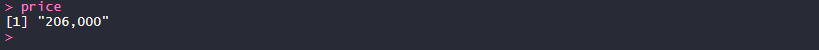 소스보기를 해서 보면 206,000 이라는 숫자가 있는 부분을 확인할 수 있습니다. R에서 명령어를 이용하여 저 부분의 값을 가져오면 당일 현재 기준 주식가격을 가져올 수 있겠네요.