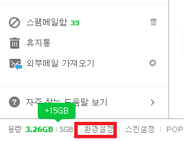 먼저 메일을 보내기위해 사용할 메일 서버가 필요한데 가장 쉽게 사용가능한 naver 메일을 이용해보겠습니다. 먼저 Naver 메일 설정이 필요하니 Naver 메일로 들어가서 좌측 하단의 환경 설정으로 들어갑니다.