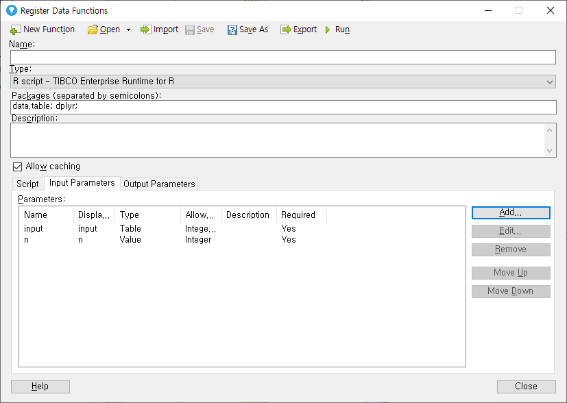 상단 메뉴 - Tool - Register Data Functions를 클릭합니다.